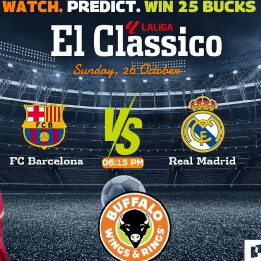 Watch El Classico: FC Barcelona v Real Madrid at Buffalo Wings & Rings, Bahrain