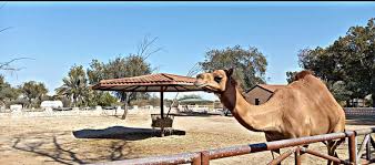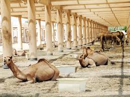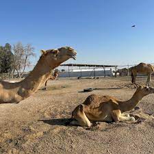 Welcome to the Royal Camel Farm, Bahrain. This farm is open every day from sunrise to sunset, with free entry and free parking on-site as well as washroom facilities. Please note that the camels with chains are males, and the reason for using the chains is to prevent them from otherwise killing each other to mate with the females. They are thus spaced equally apart so that other male camels are outside their bite reach. Female camels can be seen inside the pens where they are free to roam.