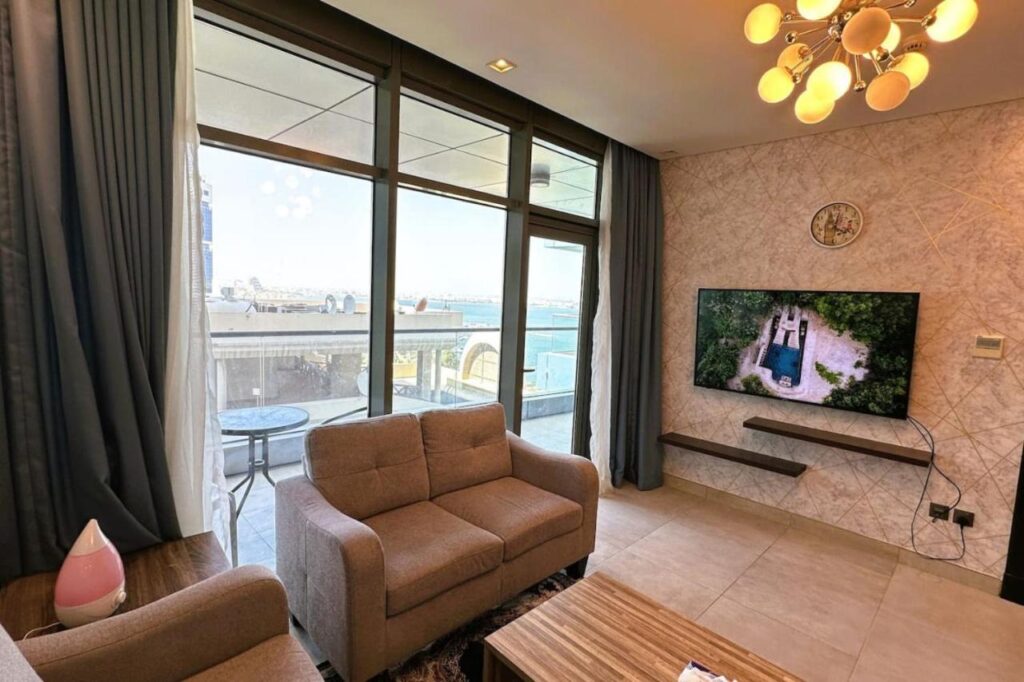 The 62 m² Sunrise Manama Apartment offers a private swimming pool and a Jacuzzi, perfect for a relaxing stay. This one-bedroom apartment is ideally located just 25 minutes on foot from the Bahrain National Museum and within close reach of Block 338’s dining and nightlife. Tala Plaza is only a five-minute drive away, while Bahrain International Airport lies 15 km from the property. Gudaibiya Palace is also nearby.